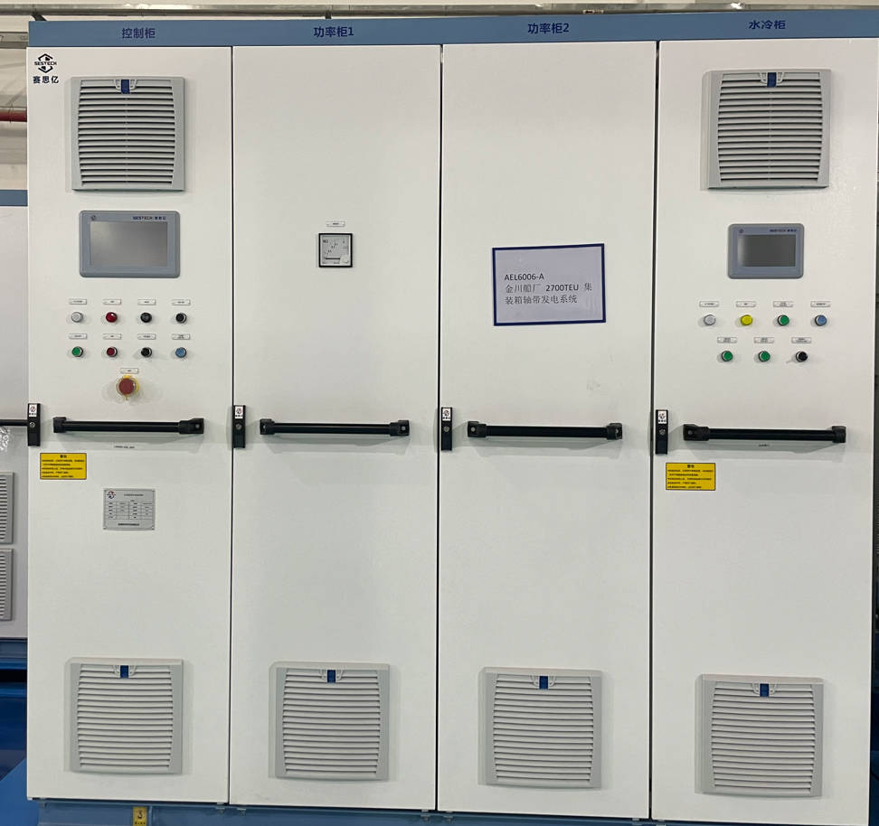 由廈門良翔海運有限公司出資、浙江金川船業(yè)有限公司建造的2700TEU集裝箱船,搭載賽思億S-Shaft軸帶發(fā)電系統(tǒng),系統(tǒng)配置一臺600kW的軸帶永磁低速電機,核心關鍵變頻電控設備采用賽思億自主知識產(chǎn)權產(chǎn)品。目前順利通過中國船級社江蘇分社檢驗,已正式交付船廠。