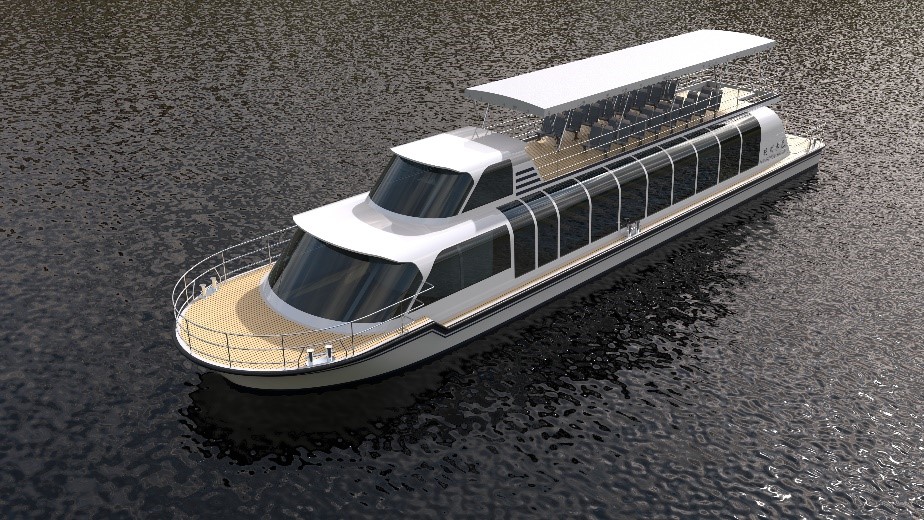 該型船最大船長28.00m,型寬5.80m,型深2.00m,設(shè)計吃水1.15m,可搭載乘客120人,動力系統(tǒng)采用賽思億S-Renewable系列純電池動力推進系統(tǒng),整個系統(tǒng)配置共接入2組鋰電池組,整船鋰電池容量共計約559kWh,驅(qū)動2臺55kW的推進電機。同時該船搭載賽思億S-Link遠程監(jiān)控系統(tǒng),可為船舶運營方提供全方位的船舶運營數(shù)據(jù)分析和遠程監(jiān)控服務(wù)。目前,該系列船舶建造周期時間緊、任務(wù)重,賽思億將全力配合,力保整船交期。