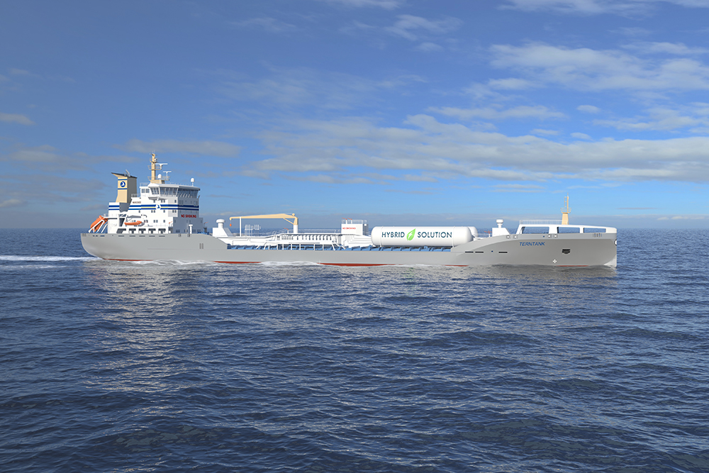 15000噸雙燃料化學(xué)品船總長(zhǎng)147米,型寬22米,服務(wù)航速14.5節(jié),續(xù)航力6600海里,入級(jí)BV船級(jí)社,混合動(dòng)力系統(tǒng)配備電池(424kWh),抱軸電機(jī)額定功率為1000kW,采用雙殼單甲板單機(jī)單槳設(shè)計(jì),是新一代的HYBRID船型。