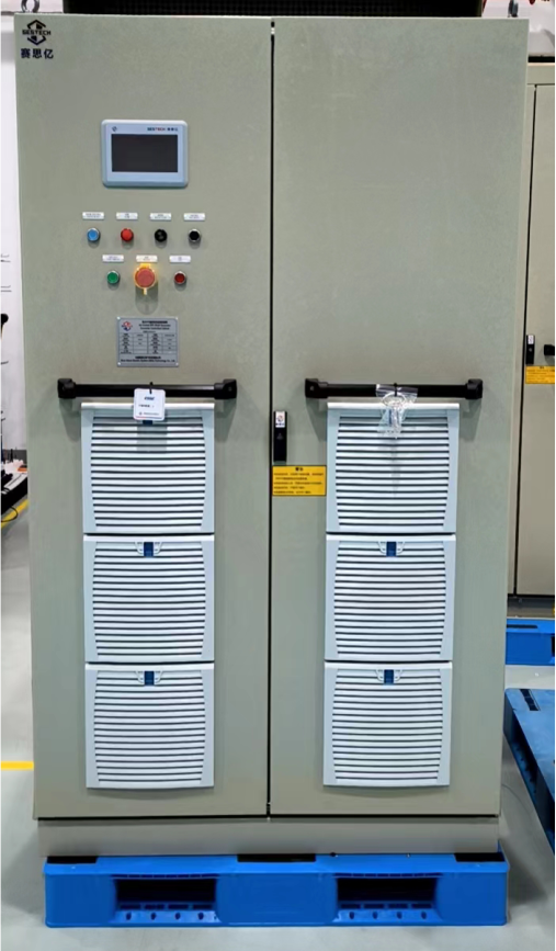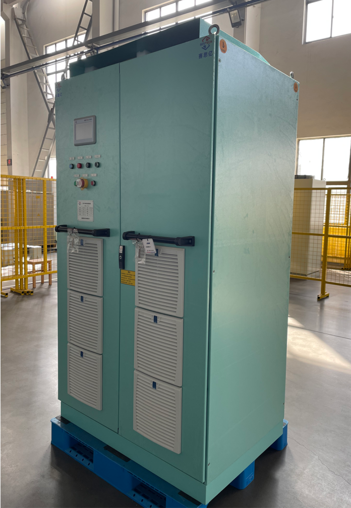 該船動(dòng)力來(lái)源為常規(guī)柴油推進(jìn)主機(jī),系統(tǒng)配置一臺(tái)350kW的軸帶發(fā)電機(jī),軸帶電機(jī)通過(guò)齒輪箱與主機(jī)自由端相連接,確保主機(jī)在正常使用轉(zhuǎn)速范圍內(nèi),系統(tǒng)能夠發(fā)出足夠的功率,供應(yīng)全船負(fù)荷。目前變頻電控設(shè)備已發(fā)至客戶指定地點(diǎn)。