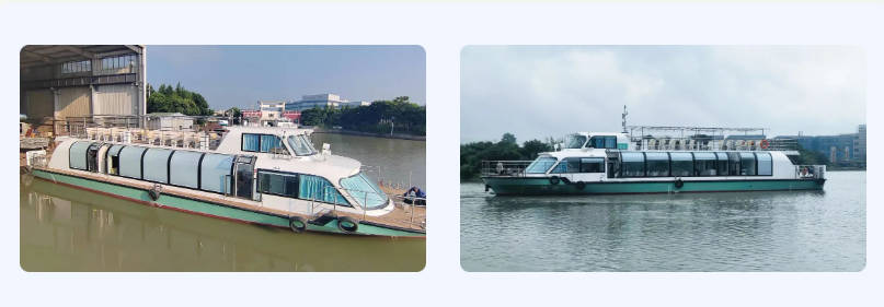 三江兩岸水上黃金旅游線一期4艘新造船項目目前陸續(xù)試航成功,賽思億動力系統(tǒng)各項功能通過試航考驗,目前,“江蘆號”、“江翠號”、“江薇號”、“江雪號”已陸續(xù)開往杭州,為即將到來的杭州亞運會服務(wù)!作為錢塘江水域目前載客量最大的批量新能源客船,將為“三江兩岸”帶來更多元化、更高品質(zhì)的水上游船服務(wù),為亞運會各方游客帶來綠色靜音服務(wù)。