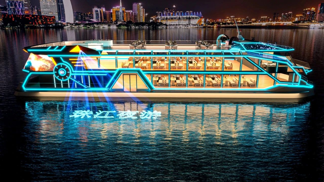 廣州首艘全息投影造型新能源游覽船開工,珠江夜游新標(biāo)桿船舶問世!