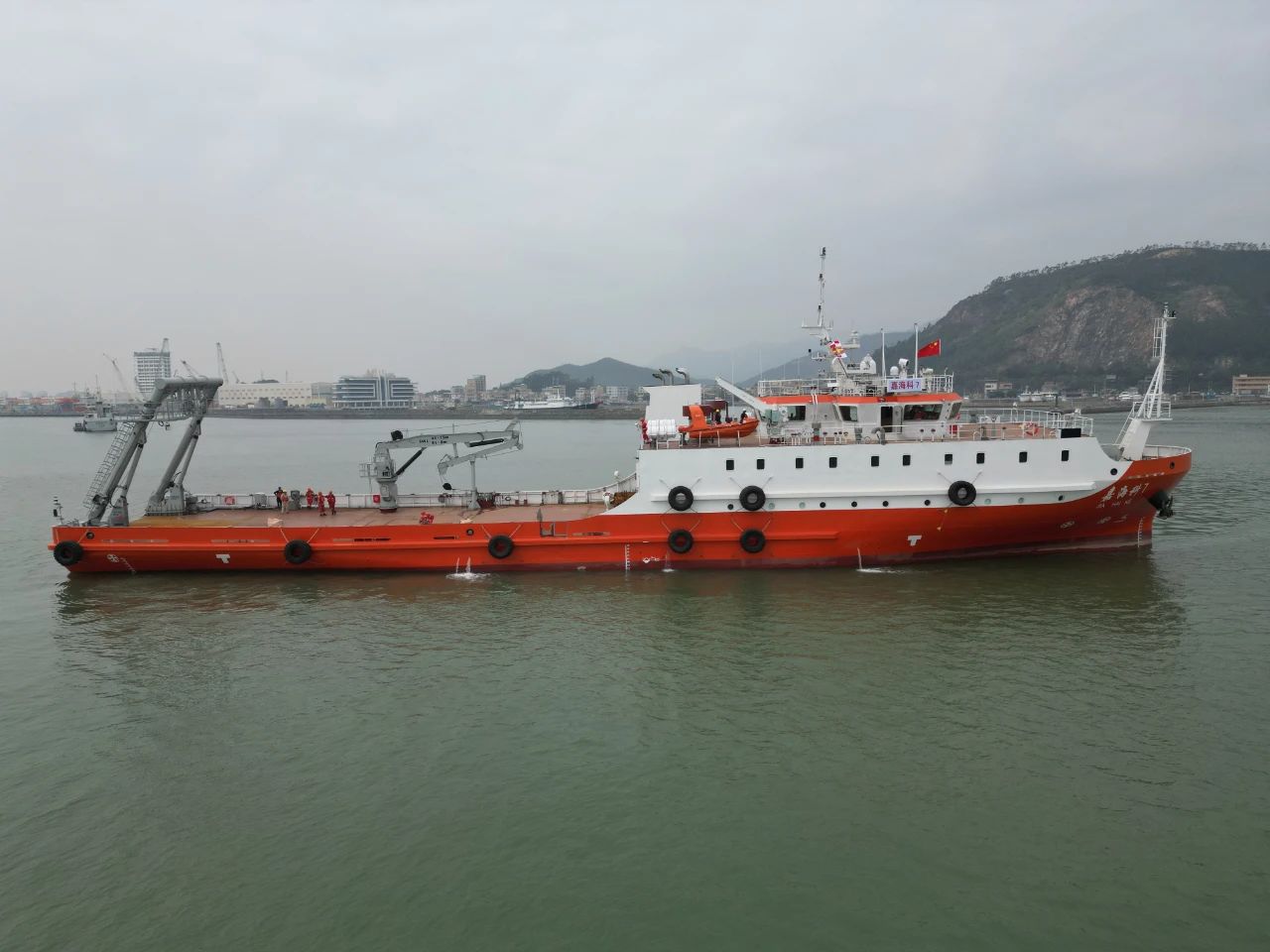 由珠海嘉海海洋科技有限公司投資建設、廣州打撈局江門有限公司承建、浙江欣海船舶設計院股份有限公司設計的“嘉???”號2000噸級科學調查船近期順利交付。“嘉???”號主要用于近海海洋地質勘測并兼顧遠海海洋科學調查,是一艘具有海洋地質勘查及研究功能的綜合調查船。該船從開工到建成,建設各方全力配合,耗時12個月,順利交付。