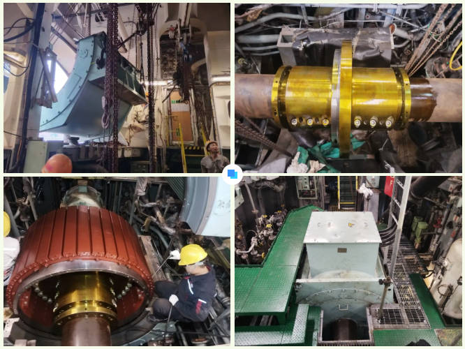 “KANARIS” 177000DWT散貨船,船長282m,入級ABS船級社,改造方案搭載中船賽思億分半式永磁抱軸電機+變頻器+變壓器的軸發(fā)改造方案,軸發(fā)系統(tǒng)額定功率1200kW,同時對原船功率管理系統(tǒng)(PMS)和主機遙控系統(tǒng)(ECS)進行改造,可實現(xiàn)降功率運行及轉(zhuǎn)速低時自動啟動發(fā)電機組,保護電站及船舶穩(wěn)定運行。作為全流程 EPC 總承包項目,中船賽思億全程主導了從前期3D掃描、方案布置設計、生產(chǎn)制造到安裝及調(diào)試等全鏈條服務。