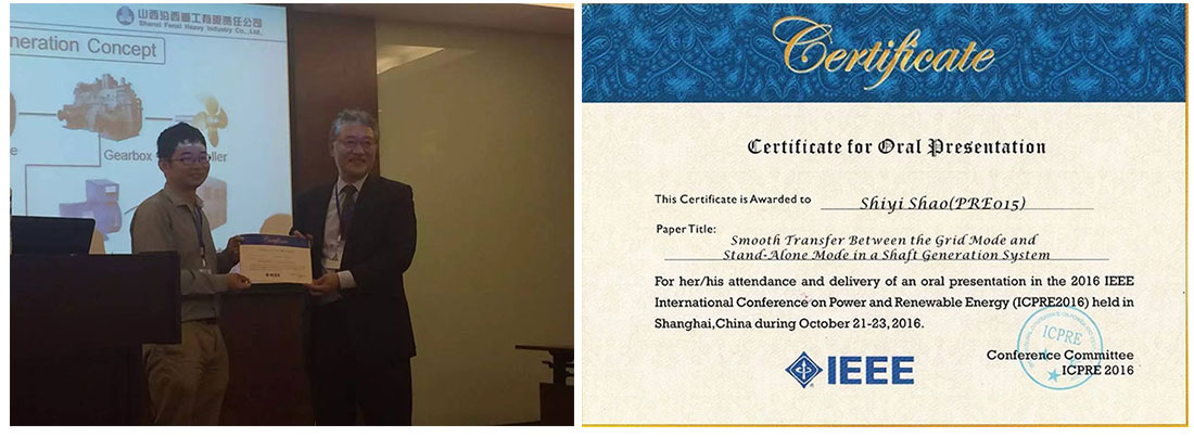精彩的主題演講及大會(huì)報(bào)告之后,會(huì)議邀請(qǐng)優(yōu)秀論文的作者北京賽思億副總經(jīng)理邵詩逸在專題會(huì)議報(bào)告廳做了題為《Smooth Transfer Between the Grid Mode and Stand-Alone Mode in a Shaft Generation System》(軸帶發(fā)電系統(tǒng)中并網(wǎng)模式和獨(dú)網(wǎng)模式之間的平滑切換)的報(bào)告。該課題為軸帶發(fā)電系統(tǒng)應(yīng)用中的關(guān)鍵難題,而這一難題的解決可以為用戶提供功能更強(qiáng)大、使用體驗(yàn)更好的軸帶發(fā)電系統(tǒng)。